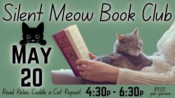 Unwind at our Silent Meow Book Club—a cozy, low-key gathering where book lovers and cat lovers come together. Bring your current read, settle in with a warm drink, and enjoy peaceful reading time surrounded by friendly feline companions.