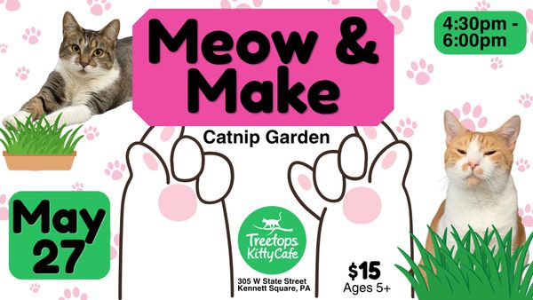 We’ll also build a shared catnip garden for the café cats—so you can craft something for home and give back to the Treetops kitties, too!