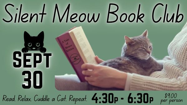 Stop by, Tuesday, September 30 from 4:30–6:30 PM for two peaceful hours of reading in the cozy company of our cafe cats. Bring your book, find a comfy spot, and enjoy quiet time with purrs as your background music. 🐾