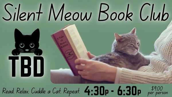 Join us for a calm, silent-reading session at Treetops! Bring your favorite book (or browse our small cat theme books), find a comfortable spot, and enjoy a relaxed atmosphere with adoptable kitties. No discussion, no pressure—just quiet reading time, and lovable cats.